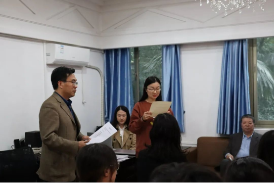 吴钟明老师作为新一届口译队总教练,讲述了口译队的历史传承与发展思路。口译队过去的辉煌,离不开学校、学院领导和老师们的支持。他表示将全力支持罗菁老师的工作,并把积累的经验、资料、资源投入到口译队的建设之中,把口译队推向新的高度。