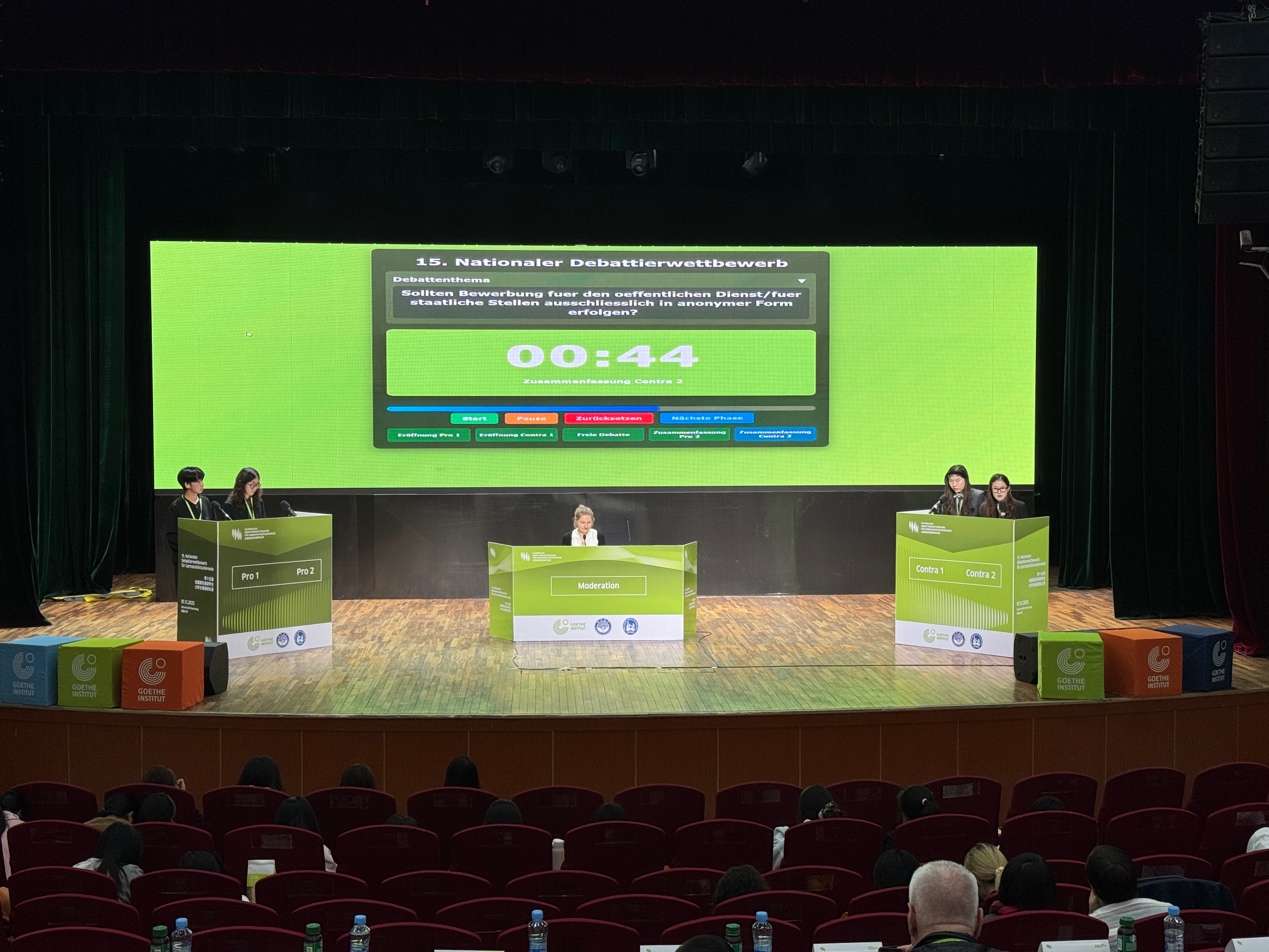 在10月25日至26日的线上初赛环节,吴妙涵和牟景祺围绕“是否应该允许公司职员在工作期间使用手机处理私人事务”这一题目展开辩论,两位同学凭借出色的语言表达能力、严密的逻辑思维和默契的团队配合,与其他15所高校的代表队一起脱颖而出,成功晋级决赛。在八分之一决赛中,我校代表队与传统德语强校同济大学代表队对阵,双方就“是否应该在公共服务和政府机构工作面试中完全实施匿名制度”展开激烈讨论,两位同学在辩论中用清晰的观点、流利的表达和沉着的应变展现了52书库