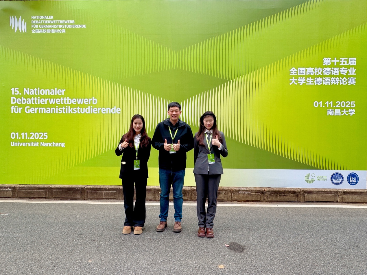 德文系选派2023级本科生吴妙涵和2025级本科生牟景祺组队参赛,由张申威老师担任指导教师。两位同学经过初赛和决赛的比拼,最终斩获全国三等奖。
